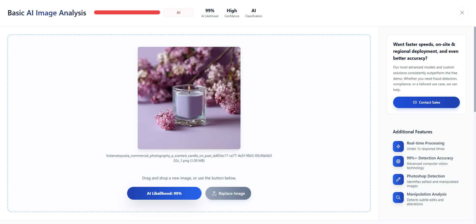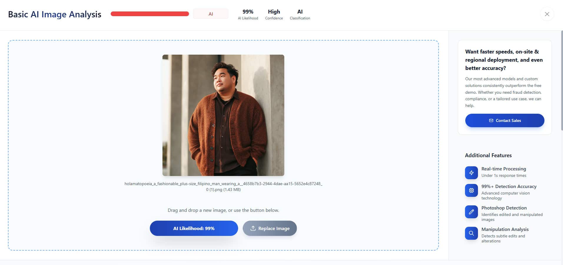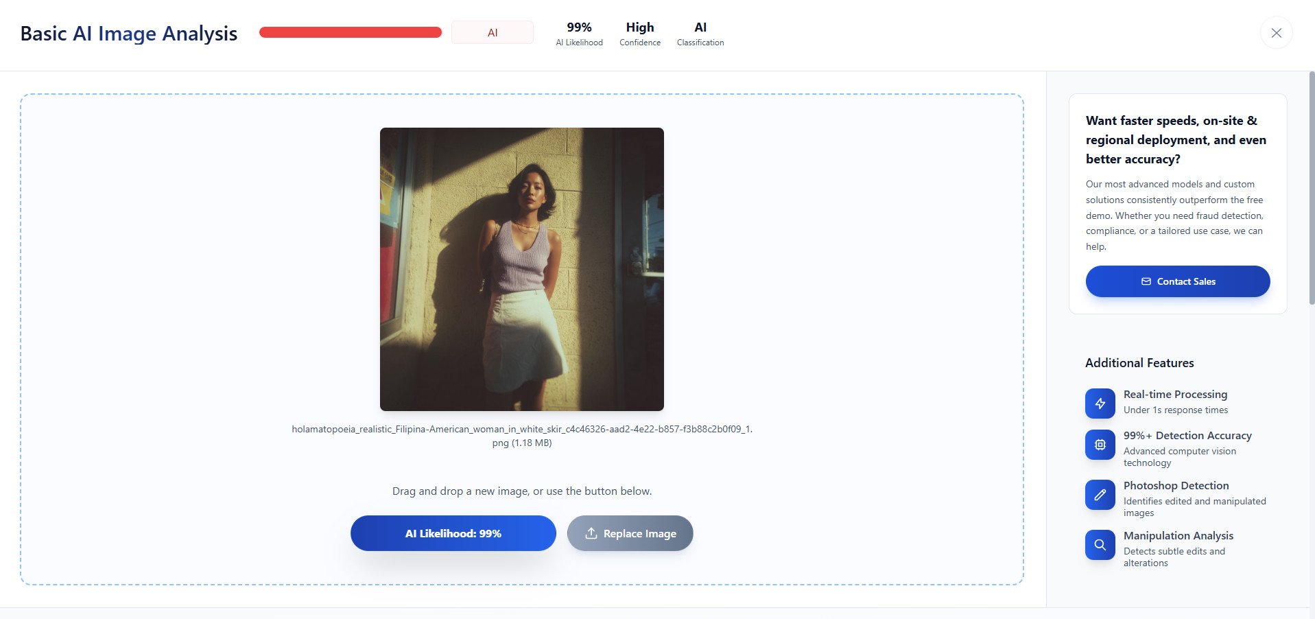 Not “near excellent,” not “practically there.” A full, clear 100%. Each AI picture I threw at it, it recognized appropriately. Each actual picture, identical factor. No hesitation, no bizarre misreads, nothing that made me second-guess the output. It felt like utilizing a software that’s already calibrated for the subsequent era of AI pictures, not simply the present ones.