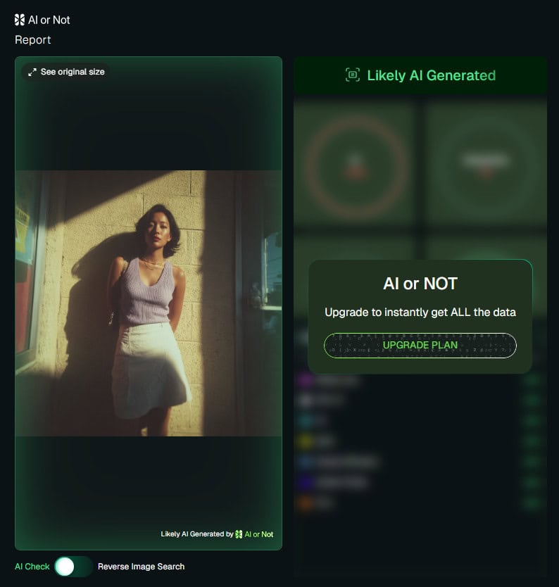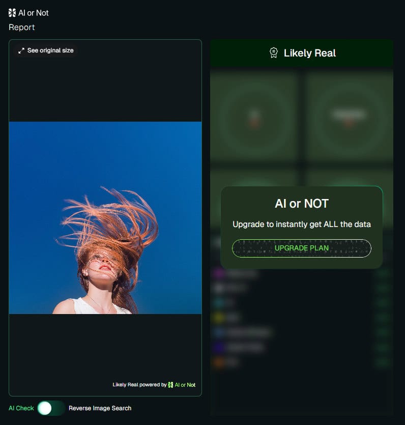 AI or Not makes use of a classification mannequin skilled on a mixture of actual images and AI-generated pictures. It scans patterns, textures, inconsistencies, and different “digital footprints” frequent in artificial pictures — issues the human eye typically misses.